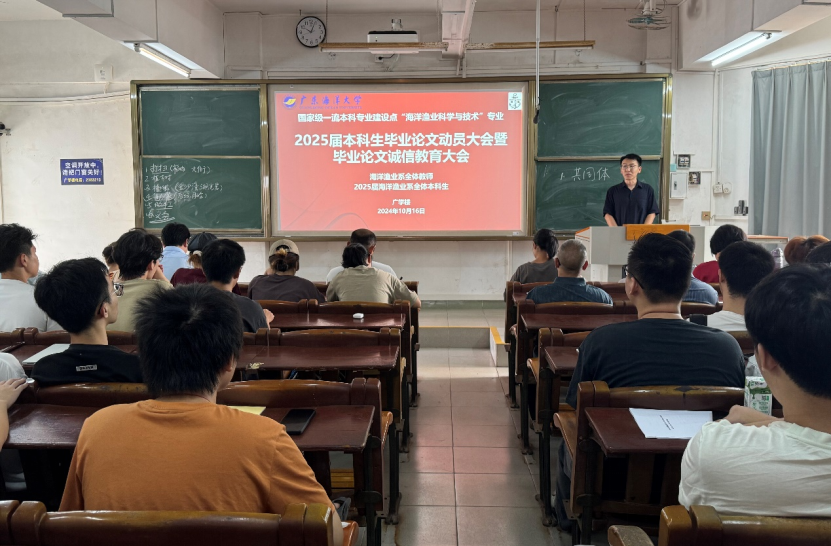 10月16日,william威廉中文官网海洋渔业系于广学楼305教室召开2025届本科生毕业论文动员大会暨毕业论文诚信教育大会。海渔系本科毕业论文指导教师和2025届全体本科毕业生参会。会议由系副主任董建宇主持。会上,董建宇副主任对近期学校有关2025届本科毕业论文工作的通知和本科毕业论文管理办法等文件进行了详细的解读,宣讲了教育部、广东省以及学校有关本科毕业论文抽检办法、学术不端处理办法等规定,并着重强调了本科毕业论文在人才培养...