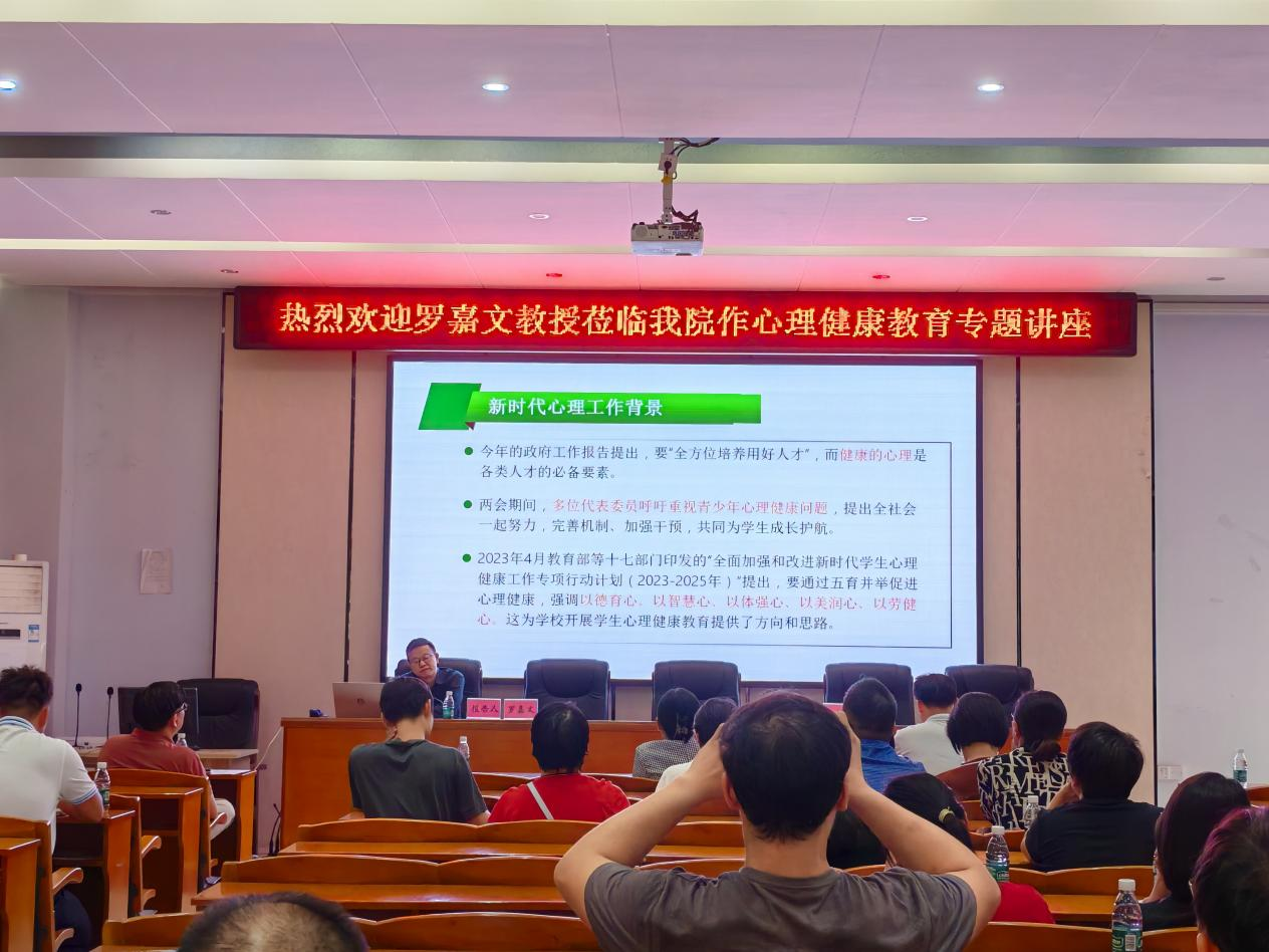 10月23日,为提高研究生导师、班主任及辅导员对学生心理问题的识别和处理能力,广东工业大学心理健康教育中心主任罗嘉文教授应邀莅临william威廉中文官网作《学生心理危机识别与处理》心理健康教育专题讲座。学院党委书记王海燕等全体教职工参加,讲座由学院党委副书记孔沛球主持。罗嘉文围绕心理危机理论背景、心理健康危机识别、心理危机预防技术、日常心理工作建议和心理危机干预案例五方面作了深入浅出的阐述,强调了新时代学生心理健...