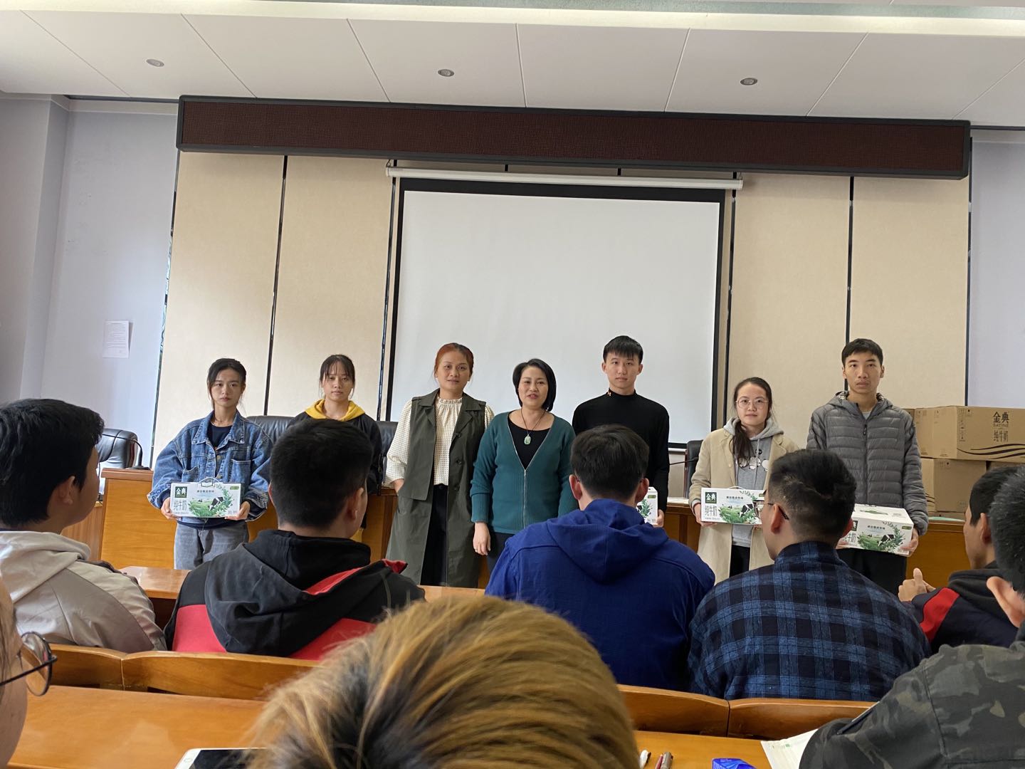 李广丽、王海燕分别询问了冲刺阶段同学们的心理状态、复习进度和生活状况,高度赞扬了同学们认真刻苦、努力拼搏的精神,勉励同学们劳逸结合,做好心理调适、提高学习效率、全力以赴考上自己的理想学校。李广丽院长代表学院给考研学生送上慰问品。