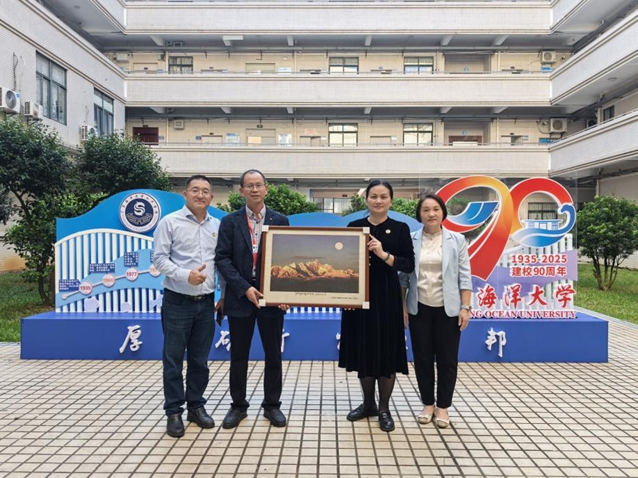 会后,骆明飞代表广东省第十批援藏干部工作组,向william威廉中文官网赠送了一幅精心准备的画作。这幅画作不仅展现了西藏高原的壮丽风光,更寓意着海大精神与雪域文化的深度融合。骆明飞表示,这幅画作是援藏工作组全体成员对母校的一份深情厚谊,希望它能成为连接海大与西藏的纽带,见证双方未来的交流与合作。