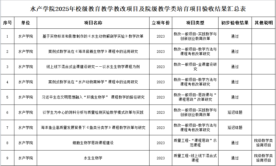 根据学校教务部《关于做好2025年度校级教育教学改革项目结题验收工作的通知》要求及学院教学类培育项目工作要求,我院组织校级教育教学改革项目和院级教学类培育项目进行结题验收。经项目负责人提交结题材料、学院形式审核、组织校内外专家进行结题评审,7项校级教育教学改革项目中5项通过院级结题验收,2项延迟结题,2项院级教学类培育项目均通过结题验收,现将结题验收结果予以公示(详见附表)。