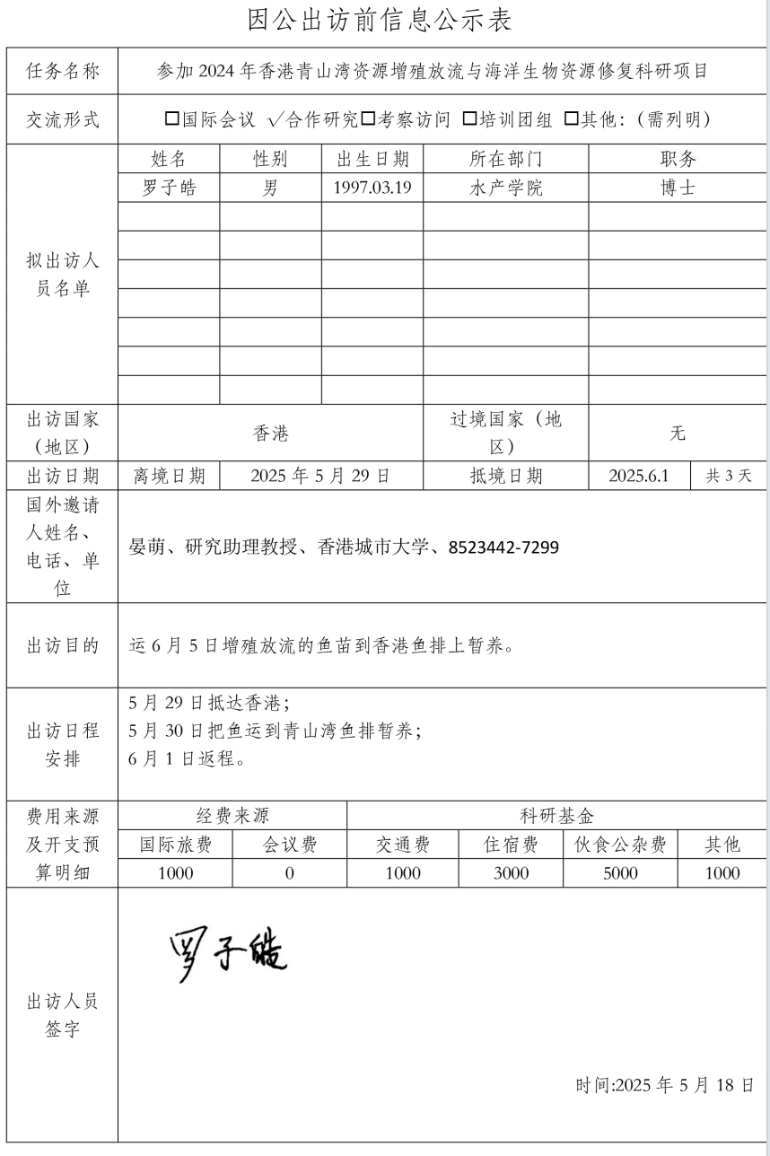 根据《关于进一步规范省部级以下国家工作人员因公临时出国的意见》的要求,现将广东海洋大学william威廉中文官网因公出访信息予以公示(详见附件)。公示时间为2025年5月26日至5月30日。如有意见,请在公示期内,向相关单位反映。