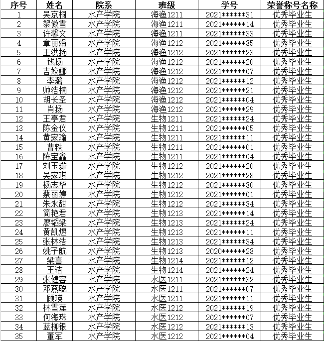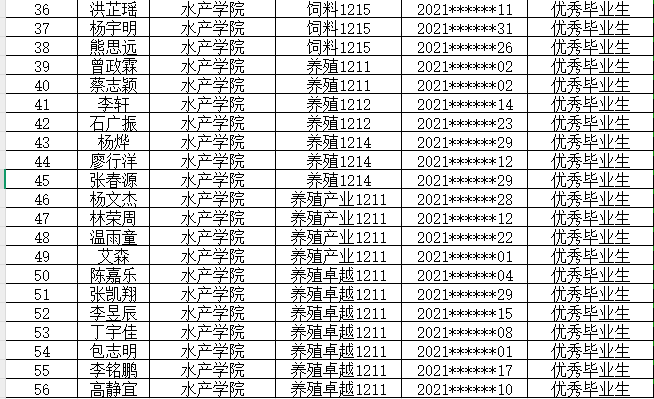根据《关于评选2025届优秀毕业生及征集百名优秀毕业生风采展示材料的通知》精神,经学生申请、学院审核,拟推荐包志明、高静宜、杨志华、王洪扬、邓燕聪5名同学参评“百名优秀毕业生”遴选,拟推荐包志明等56名学生为2025届优秀毕业生,现将名单公示如下: