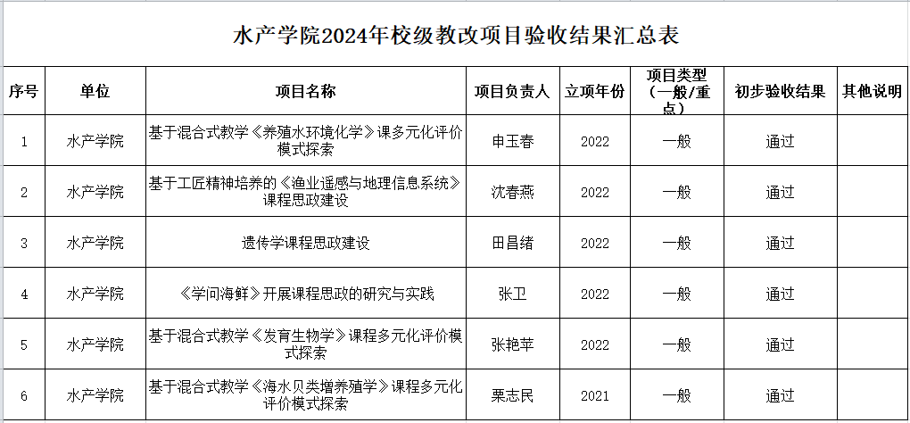公示期为2024年9月30日~10月2日。公示期内如有异议,请联系学院党政办欧老师,电子邮箱:scxydzb@gdou.edu.cn;如有违规违纪,请联系纪委夏老师,电子邮箱:scxyjw@gdou.edu.cn。来信请用真实身份并附具体联系方式,要客观陈述情况和问题,提供事实依据,坚持实事求是的原则,不得借机诽谤和诬告。公示期内无异议或有异议经核实后符合要求的,学院将验收结果上报教务部。