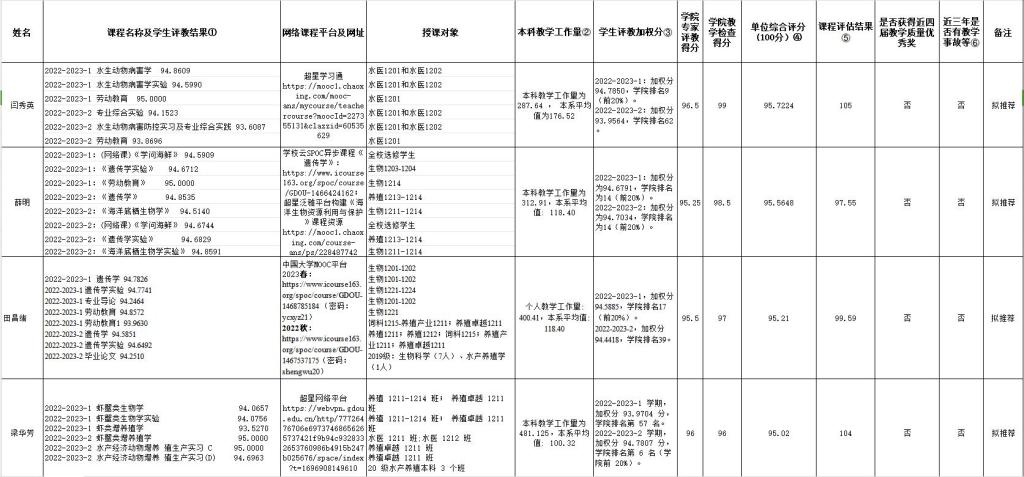 附表:广东海洋大学第十五届教学质量优秀奖单位评价推荐汇总表