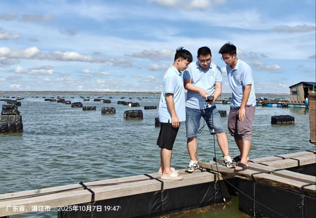 科技支撑:数据采集助力科学复产。调研过程中,团队不仅与贝农深入交流,更在流沙村、大井村等重点海域现场监测多项水质指标,为科学评估灾后海域环境、制定复产方案提供第一手数据支持。