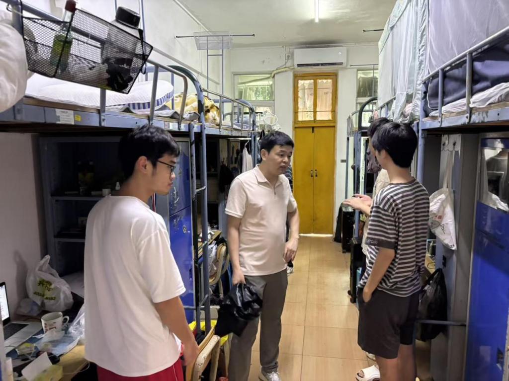 走访过程中,学院领导老师和同学们进行了亲切交流,仔细询问了学生暑假期间的生活、学习状况及新学期返校后的适应情况,耐心听取了同学们对学业规划、校园生活等方面的想法与诉求。同时,学院领导老师重点查看了宿舍的卫生环境与设施状况,叮嘱同学们要增强安全意识,注意用电安全,保持宿舍干净整洁,共同维护良好的居住环境,勉励大家要尽快调整状态,以饱满的精神面貌投入新学期的学习生活中,打好专业基础,提升综合素养。