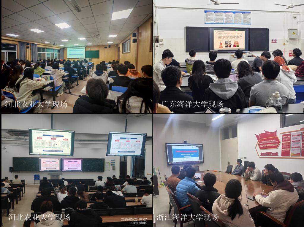 3月20日,教育部海洋渔业科学与技术专业核心课程群虚拟教研室(以下简称“海渔虚拟教研室”)开设的2025年第一期“海渔大讲堂”,在河北农业大学开讲,海洋渔业系在兴海楼513教室设置广东海洋大学分会场。分会场活动由海渔系副主任董建宇主持。海洋渔业科学与技术及相关专业本科生、研究生等30余人参加分会场活动。来自河北农业大学、中国海洋大学、浙江海洋大学、海南热带海洋学院等全国10所高校海渔专业的教师和学生200余人在各自分会场在线参会。