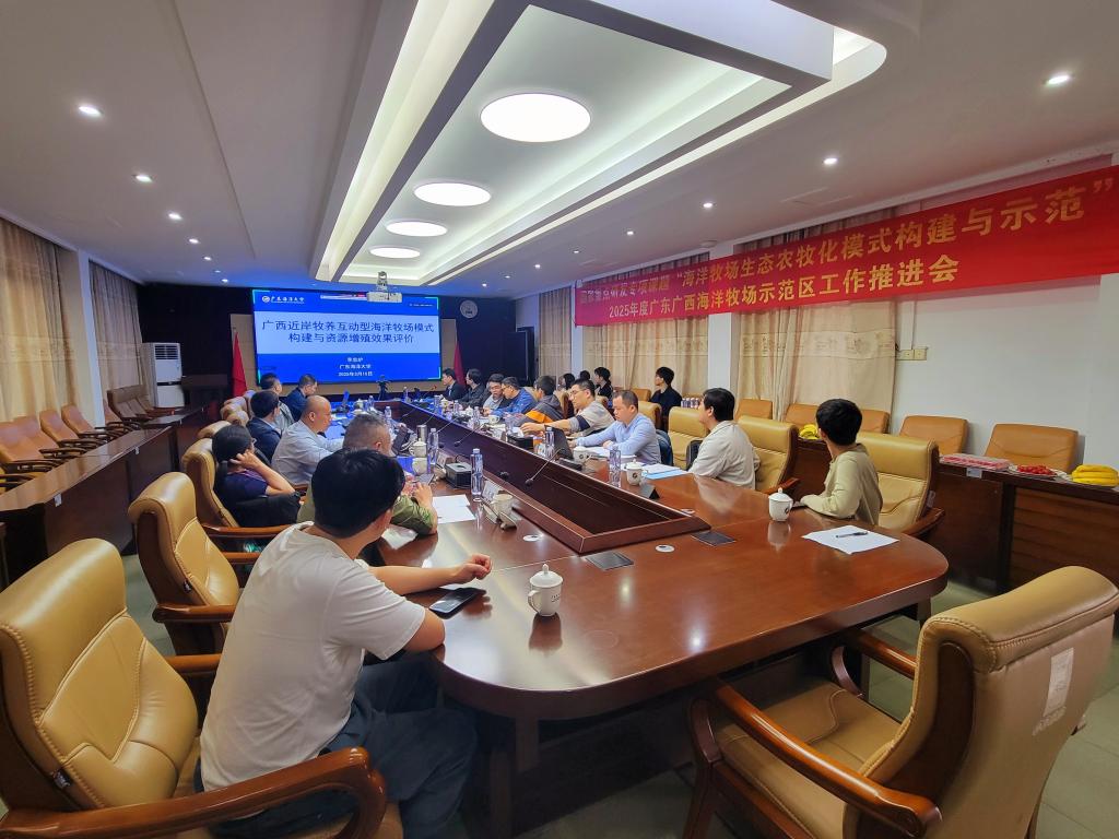 会议聚焦粤桂海洋牧场模式构建和示范区建设中的关键痛点,深入探讨通过科技手段实现只要增殖与产业增效的双赢局面,强化一体化监测与智能化管理,推动资源修复与牧养互动的双向协同,从而在广东和广西典型示范区加速推进海洋牧场生态农牧化模式的发展。与会专家针对两个示范区构建中的典型问题进行了深入交流,明确了2025年度工作任务及考核指标完成要求,并就海洋牧场区生境营造、自动化监测与智能化管控、资源高效增殖等关键指标确定了具体的工作要求,为确保项目顺利通过验收奠定坚实基础。