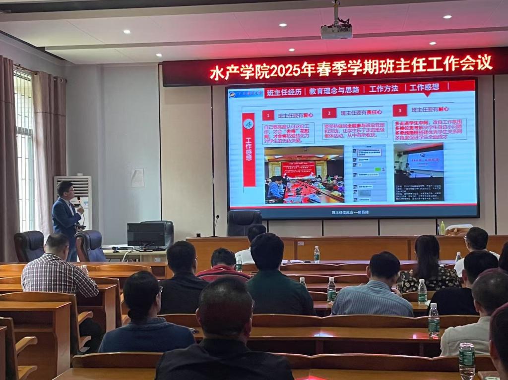 3月13日,为扎实做好新学期学生工作,学院在水产楼109室召开2025年春季新学期班主任工作会议,全体班主任、辅导员及部分研究生导师参加会议,会议由学院党委副书记孔沛球主持。