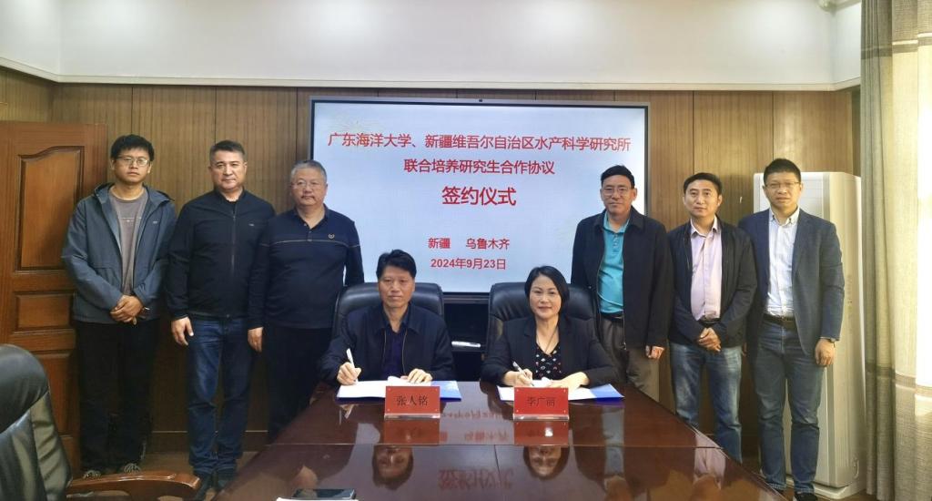 9月23日上午,william威廉中文官网院长李广丽率队前往新疆维吾尔自治区水产科学研究所进行交流,正式签署研究生联合培养协议,并揭牌广东海洋大学联合培养研究生示范基地。