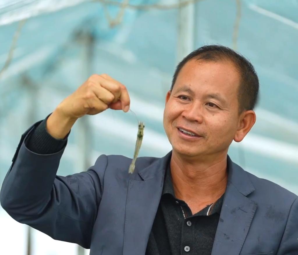骆明飞对养殖虾类进行检查