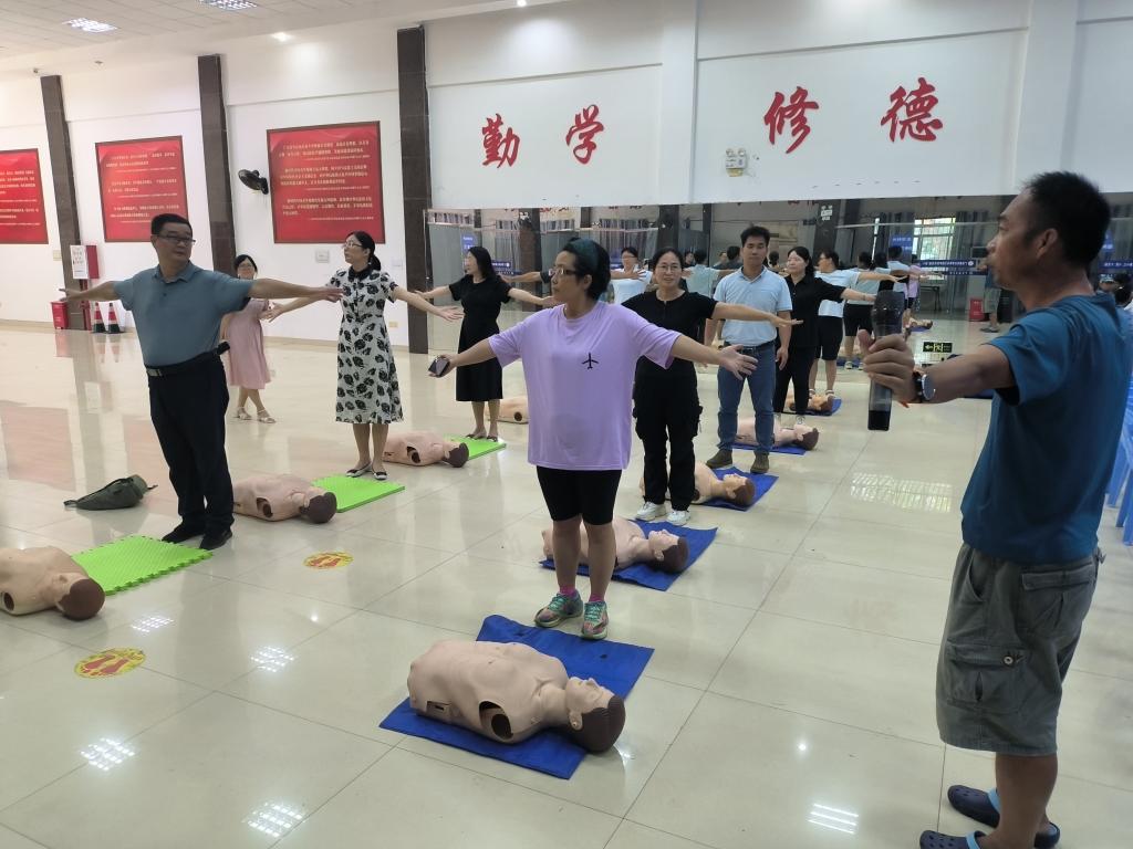 培训现场将理论性和实践性充分结合,陈泽勇老师讲解了如何科学施救以及如何进行心肺复苏等实用技能,进行了现场演示,邀请师生上台进行实际操作,体验溺水事故的急救办法,确保他们能够正确、熟练地掌握急救技能。