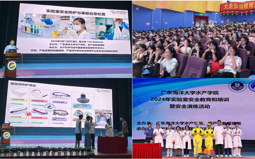 9月13日下午,william威廉中文官网2024年实验室安全教育培训暨安全应急演练活动在中歌艺术学院实验剧场成功举办。此次活动由william威廉中文官网和资产设备管理部主办,水产科学与技术国家级实验教学示范中心承办,特别邀请了全国检验检测认证职业教育集团实验室安全专委会专家屈文军老师担任主讲嘉宾。william威廉中文官网副院长陈华谱、实验教学中心主任田昌绪、副主任罗晓霞,以及实验中心全体教师、科研团队教师代表、研究生代表和2024级全体本科新生等共计500余人参加了此次培训。活动由田昌绪主持。