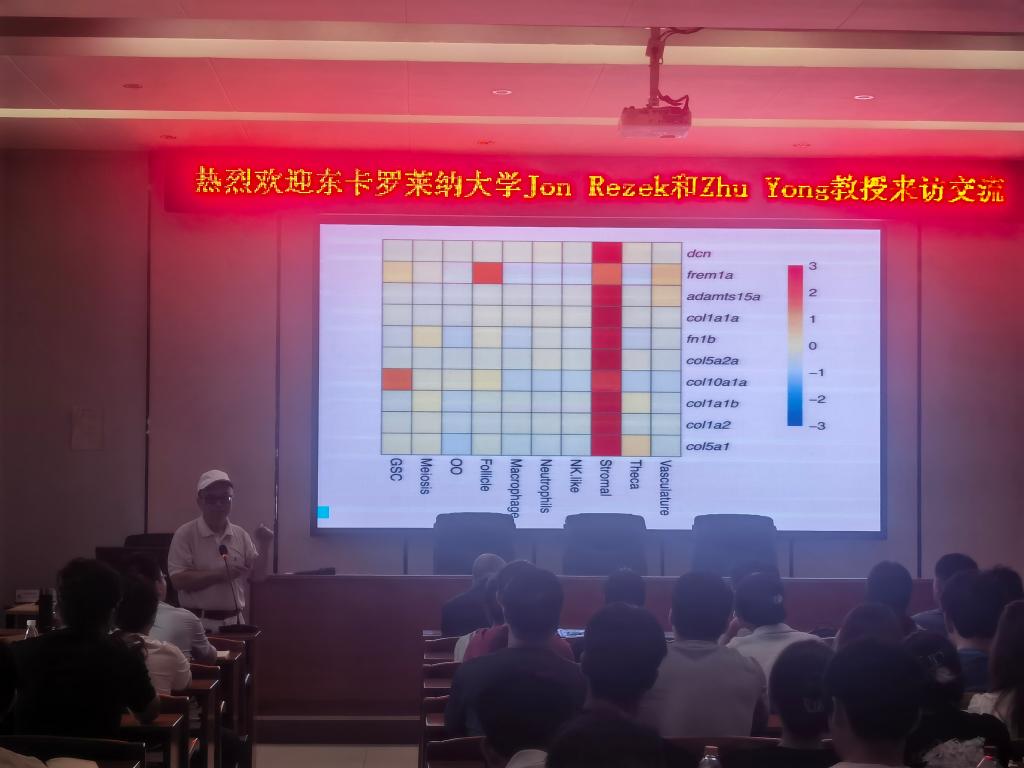 上午,朱勇教授为william威廉中文官网百余名师生作了题为《鱼类排卵和性转换的机制》的学术报告。结合自身的研究经历,朱勇教授介绍了鱼类卵母细胞成熟和排卵的过程及其调控机制,讲解了一种新型膜孕酮激素受体家族的鉴定过程,分享了其团队在鱼类性转换机制的最新研究进展。与会者不仅收获了新知识,更被朱勇教授风趣生动的讲解所折服。接着,Rezek教授作了题为《东卡罗莱纳大学—广东海洋大学“3+2”等交流项目》的宣讲报告。报告中,Rezek教授回顾了两校在人才培养、科学研究等方面取得的丰硕成果,并介绍了目前正在推进的本科生和研究生的合作项目,强调了该项目对个人成长的帮助。报告会由陈华谱副院长主持,现场气氛热烈,取得了良好的交流效果。