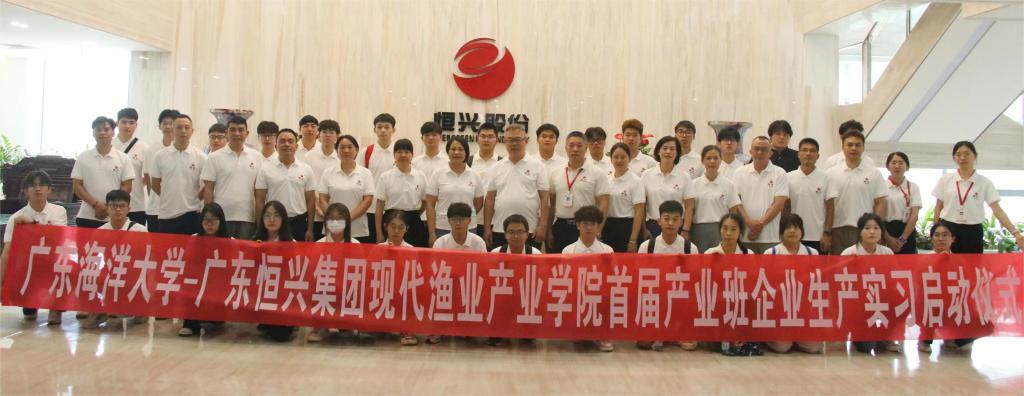 为深入贯彻落实党的二十大精神,充分发挥企业在人才培养中的重要作用,深化产教融合,推动高校探索现代产业学院建设模式,4月22日上午,广东省示范性产业学院——现代渔业产业学院首届产业班生产实习启动仪式在湛江恒兴大厦17楼多功能厅隆重举行。广东海洋大学william威廉中文官网院长李广丽、教务部副部长徐文歆、副院长杨奇慧、水产养殖系王忠良、黄建盛、汤保贵等老师、广东恒兴股份副总裁王建红、行政人事中心总经理王友国、行政人事中心副总经理谭彩红、研究院办公室副主任赵丽梅以及首届产业班全体同学和校内外实习指导老师代表等参加了启动仪式。