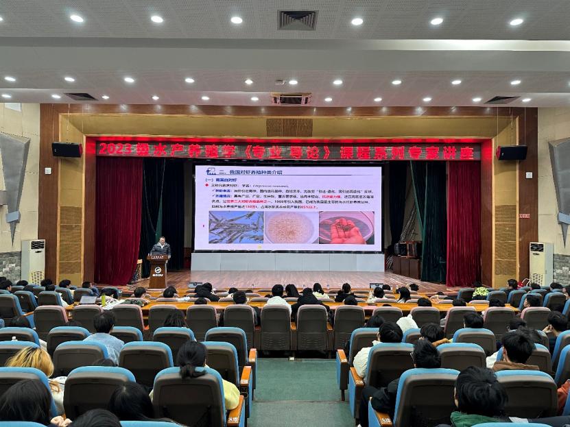 12月24日上午,2023级水产养殖学专业第一场《专业导论》课程系列讲座在广学楼多功能厅举行。学院副院长杨奇慧、水产养殖系主任王忠良、副主任黄建盛、水产养殖系部分老师及2023级全体同学、2021级和2022级产业班同学共200余人参会。会议由王忠良主持。