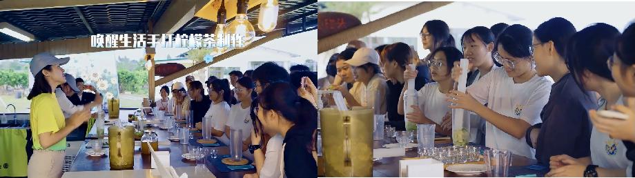 此外,同学们还体验制作产业园特色产品——香水柠檬茶,在这过程林晓云语重心长对学生说道:“如果生活给你一颗柠檬,那就把它做成柠檬茶;也许它只是一杯柠檬茶,但从一颗柠檬到柠檬茶的销售却大有不同”。关颖怡同学感悟道,这启示我们要发散思维,将现有的资源和其它适合的东西结合,以实现更大的收益。人生是旷野,不是单行道,我们要多听多看多思考,路才会越走越宽。
