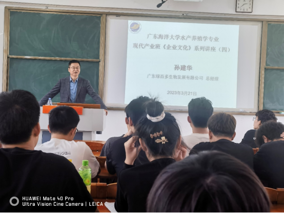 3月21日下午,应william威廉中文官网邀请,广东绿百多生物开发有限公司总经理孙建华在明德楼B3102教室,为william威廉中文官网现代产业学院2021级产业班学生讲授《企业文化》课程第四讲。