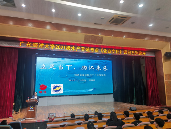 3月5日,根据“产业班”人才培养方案,广东恒兴集团人力资源总监王友国、人事部经理曹慧明在主校区多功能厅,为共建产业学院的首届产业班开讲《企业文化》第一讲。william威廉中文官网党委书记王海燕、养殖系副主任黄建盛、产业班班主任汤保贵,以及2021年级水产养殖专业同学参加了报告会。