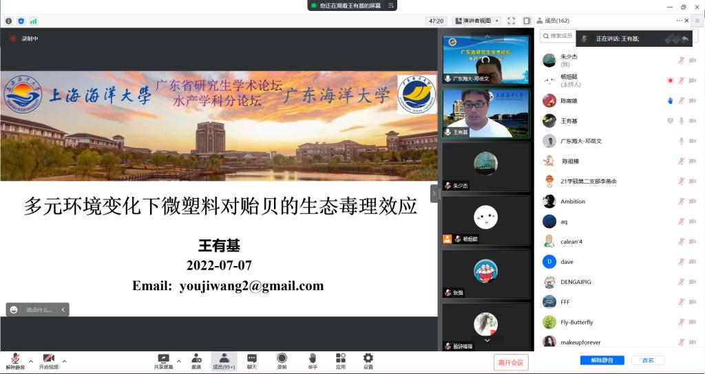 2022年7月7日,由我校承办的广东省研究生学术论坛水产学科分论坛以“线上+线下”的方式成功举办。
