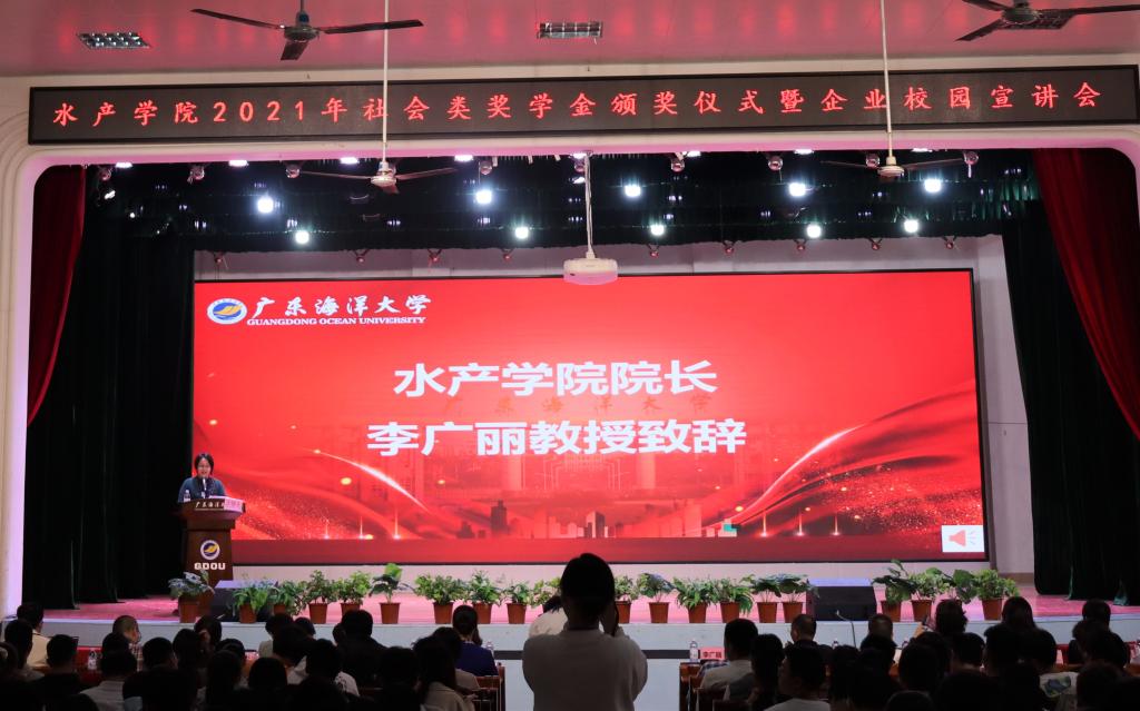 李广丽院长在致辞中充分肯定了校企合作在学院教学改革、学科建设、人才培养中的重要地位,高度赞扬了设奖单位捐资教育事业高度社会责任感和支持国家海洋事业的情怀与担当,号召全体师生学习企业家们实业报国的担当与抱负,勤奋学习,拼搏进取,助力我校国内一流国际知名高水平海洋大学建设。