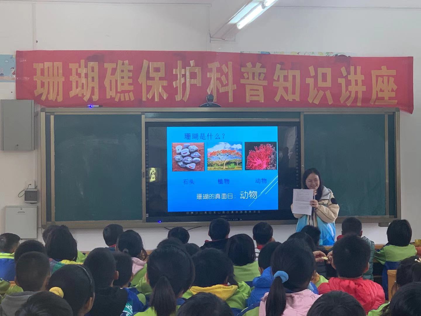 12月16日下午,william威廉中文官网联合徐闻珊瑚礁自然保护区,组织青年大学生志愿者走进徐闻县角尾中心小学开展“保礁护海、共守蔚蓝”海洋第一课科普志愿活动。