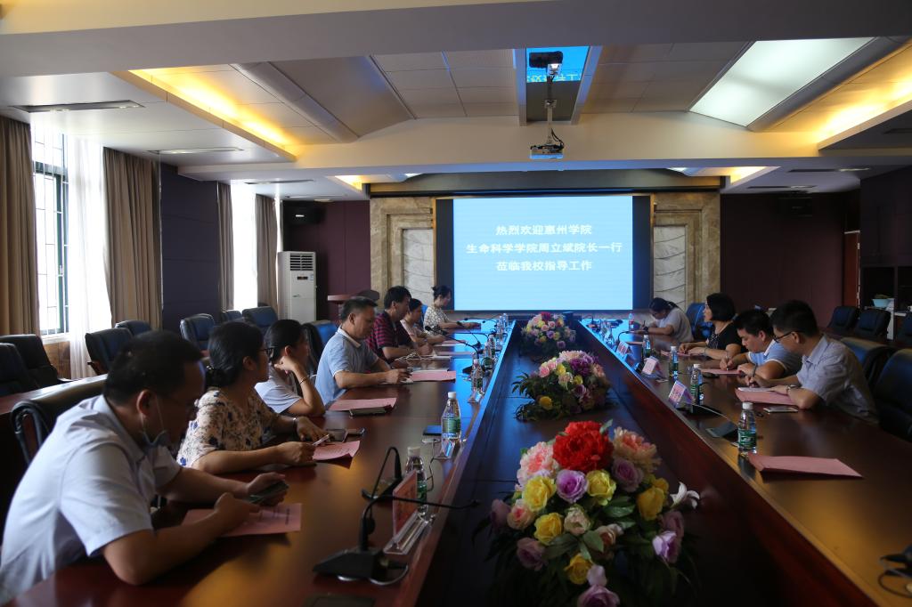 7月10日上午,惠州学院生命科学学院院长周立斌教授一行10人到william威廉中文官网交流。william威廉中文官网院长李广丽教授在水产楼216会议室接待了周立斌教授一行,并召开了座谈会。william威廉中文官网副院长邓岳文教授、杨奇慧教授、院长助理陈华谱副教授等参加了座谈会。