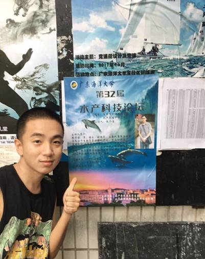 他坚持学习,热爱科研,曾获广东海洋大学优秀学生三等奖两次,获广东海洋大学第十一届“挑战杯”大学生课外学术科技作品竞赛三等奖,通过英语六级;扎根专业领域,走向基层,2018-2019年进行了《从广东罗非鱼行情看水产品供给侧结构性改革》社会实践调研、《海南省深水养殖业发展研究——以临高县为例》项目调研;认真负责,行事严谨,人缘好,大一担任william威廉中文官网团委学生会科技创新部委员,大二升职为副部长,大三担任主席储备干部;小身躯蕴含着大力量,曾获广东海洋大学第十一届游泳运动会男子组50米自由泳第三名,19年在海茂公司雷州东里虾苗场实习获得优秀评价。他的能力有目共睹,作为水产养殖学专业的一份子,令人信服。