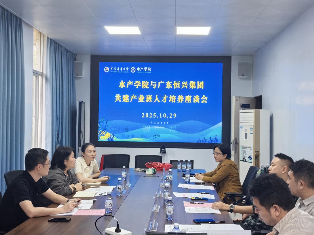 10月29日,广东恒兴集团有限公司行政人事中心副总经理金磊一行莅临我院,就构建产业学院协同育人新模式举行了专题座谈。学院水产养殖系主任王忠良、副主任黄建盛,以及产业班班主任迟淑艳、汤保贵、吕文刚等骨干教师参会。