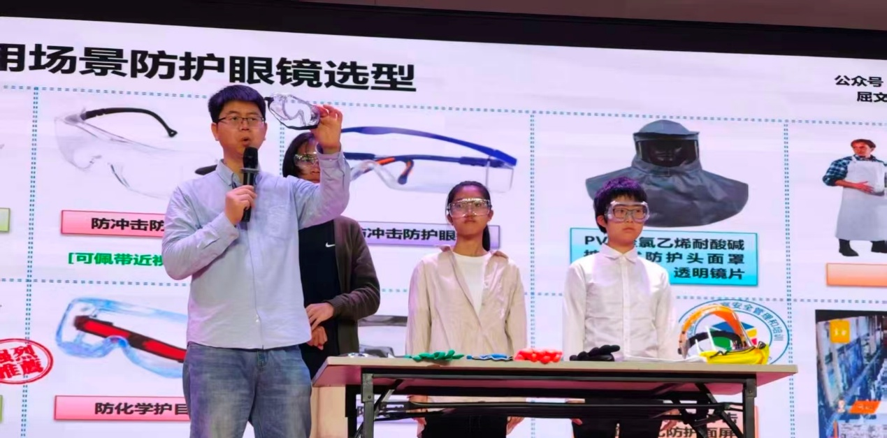 随后,屈文军老师为师生们带来了一场精彩的专题讲座。依托其11年的实验室化学品行业经验和6年的实验室安全培训经历,屈老师详细讲解了实验室个人安全防护用品的正确选型与穿脱,以及实验室安全事故的应急处置流程。在屈老师的引导下,师生们还参与了实验室化学品泄漏事故的应急演练。通过模拟真实的事故场景,师生们学习了如何在紧急情况下迅速采取有效措施,以确保实验室人员的安全。同学们在演练中表现出了极高的参与度和热情,他们认真模拟每一个步骤,确保在实际操作中能够准确无误。
