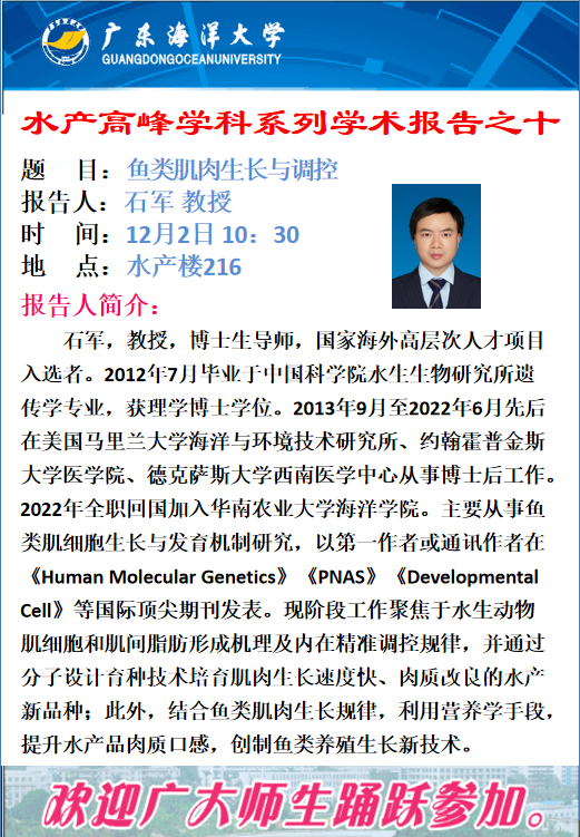 【学术报告预告】水产高峰学科系列学术报告之十