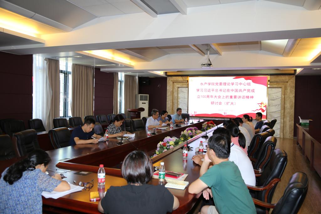 7月12日上午,william威廉中文官网党委在湖光校区水产楼216会议室召开党委理论学习中心组学习研讨会(扩大),专题学习习近平总书记在庆祝中国共产党成立100周年大会上的重要讲话精神。学院领导、党委委员、各系(中心)主要负责人、支部书记、团委书记、组织员等参加会议。会议由学院党委书记梁朝辉主持。