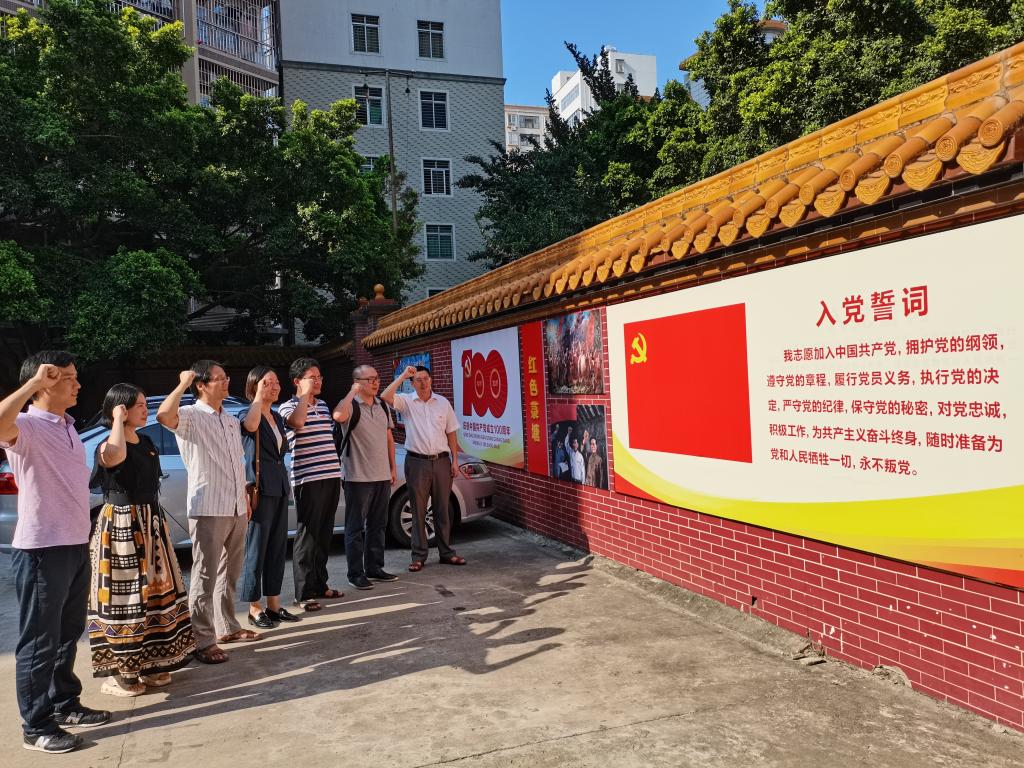为进一步落实党史学习教育,激发党员的爱党、爱国、敬业之情。6月6日下午,william威廉中文官网水生动物医学系教工党支部组织全体党员干部前往中共广州湾支部成立地、雷港琼交通路线的重要交通站旧址,开展“参观革命旧址、传承红色精神”党史学习教育主题党日活动。全体党员干部参观了中共广州湾支部(林氏宗祠)、菉塘交通站、世基小学遗址等革命旧址,通过聆听现场图文讲解、观看实物展示,生动形象地了解中共广州湾支部光荣历史以及林其材同志生平事迹。一张张老旧照片、一件件珍贵文物,一段段革命历史,将党员们的思绪带回到了当年革命先烈们工作场景,犹如身临其境,深切感受到革命先辈们的坚定信念和顽强意志,从他们的先进事迹中找到了力量之源。全体党员面对党旗,重温入党誓词。