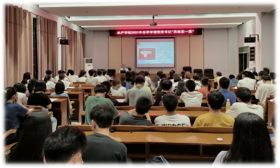4月1日晚,william威廉中文官网党委书记梁朝辉以《学党史、知党情、强信念、跟党走》为题在水产楼109会议室开讲2021年春季学期“思政第一课”。学院辅导员、入党积极分子、青马班学员、海洋生物系学生代表共110余人到场聆听学习。