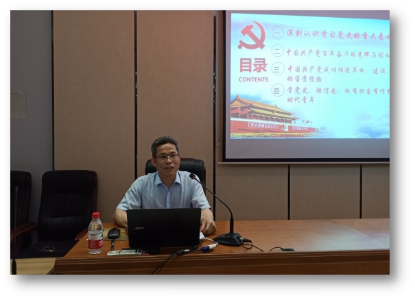 梁朝辉首先带领大家学习了习近平总书记在党史学习教育动员大会上的重要讲话和关于学习党史的重要论述,引导师生深刻认识开展党史学习教育的重要意义。随后与大家重温了中国共产党百年历史,用通俗易懂的语言、详实丰富的史料,为师生讲述中国共产党百年奋斗的光辉历程和伟大成就,以及成功推进革命、建设、改革的宝贵经验。最后梁朝辉勉励同学们:学党史,强信念,做有担当有作为的新时代青年,一要坚定理想信念,厚植爱党爱国情怀;二要努力学习,刻苦钻研,练就过硬本领;三要立足时代使命,承载勇于担当精神。