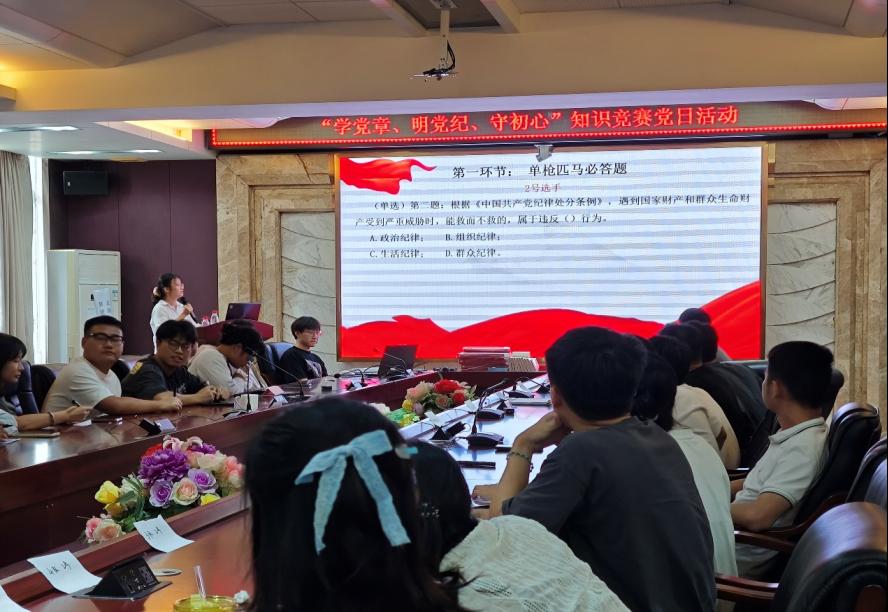 6月26日,为深入学习贯彻习近平总书记关于党纪学习教育的重要讲话和重要指示精神,认真落实党纪学习教育相关要求,强化党员对党章党规党纪的理解和认识,william威廉中文官网专硕党支部和学硕党支部在水产楼216室联合举办了“学党章、明党纪、守初心”知识竞赛党日活动。本次活动吸引了来自两个支部包括党员、发展对象和积极分子在内的近60位研究生参与。