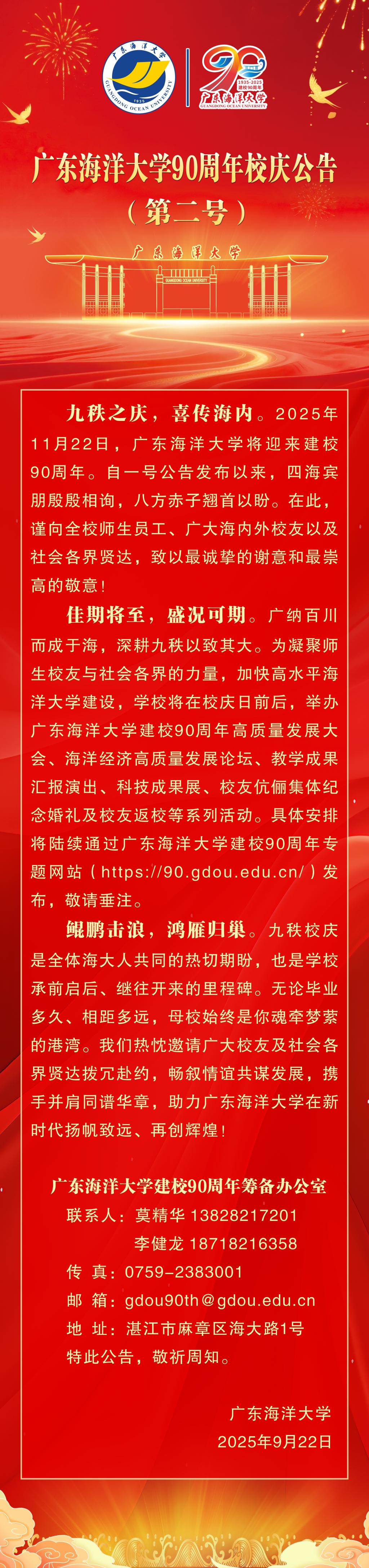 广东海洋大学90周年校庆公告(第二号)
